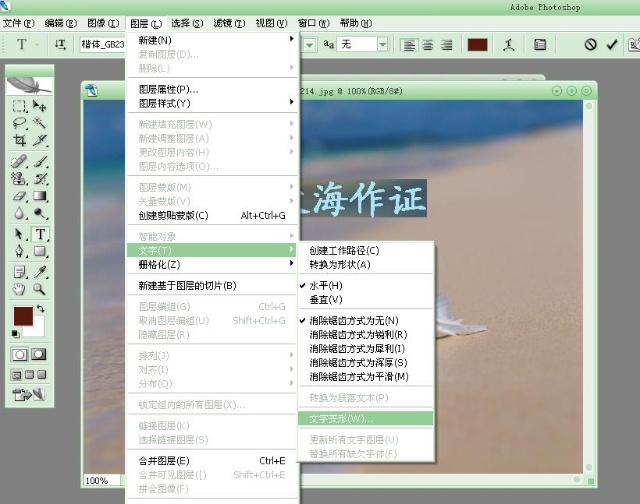 方法:選擇菜單“圖層”,然后選擇“文字”,最后選擇“文字變形”,根據(jù)你的需要可以任意選擇,隨心所欲。你動手試一試很簡單。