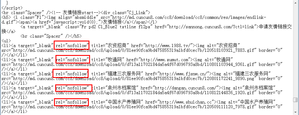 ![]() No.3:不宜交換內(nèi)頁鏈接。這一點(diǎn)并不是絕對的,假如對方站點(diǎn)的內(nèi)頁權(quán)重非常的高,也是可以考慮的,如果對方的站點(diǎn)時(shí)內(nèi)頁同時(shí)權(quán)重收錄等等不如你,那么即使對方說的多好聽,筆者都不建議你與其進(jìn)行交換。 No.4:不宜交換含js代碼的鏈接。這點(diǎn)是好多朋友換鏈接的時(shí)候忽視的。檢查的方我們可以把鼠標(biāo)至于對方站點(diǎn)的友鏈上 ,看一下狀態(tài)上的地址是否是跳轉(zhuǎn)地址,同時(shí)我們可以查看站點(diǎn)的頁面代碼,看看是否有跳轉(zhuǎn)的代碼,如下圖所示。 No.5:不宜交換導(dǎo)出鏈接太多的鏈接。根據(jù)蛋糕原理。分的人越多,你得到的就越少。即使對方的權(quán)重是9。但他有好幾百個(gè)友情鏈接。根據(jù)谷歌PR計(jì)算公式:PR(a)=d+(1-d)*(網(wǎng)頁A的PR值/網(wǎng)頁A導(dǎo)出的鏈接)+……(1-d)*(網(wǎng)頁N的PR值/網(wǎng)頁N導(dǎo)出的鏈接)。根據(jù)這個(gè)公式算下來,從這個(gè)站點(diǎn)上你所傳遞過來的權(quán)重少之又少,對此我們在交換友鏈的時(shí)候,不要只是關(guān)注對方權(quán)重有多高,導(dǎo)出鏈接往往影響更大。 No.6:不宜交換含有nofollow標(biāo)簽的鏈接。nofollow標(biāo)簽做優(yōu)化的人都應(yīng)該清楚它的用處吧。他會(huì)阻止蜘蛛進(jìn)行跟蹤,同時(shí)也阻止了權(quán)重的傳遞。查詢的方法也很簡單,我們只要直接打開對方站點(diǎn)頁面的源文件,查看其中nofollow的事情情況。當(dāng)然也并不是一定不換,如果是一些流量大的站點(diǎn)可以換,雖然有該標(biāo)簽,但是這也可以為我們的站點(diǎn)帶來一定的流量。就如同我們知道百度經(jīng)驗(yàn)的外鏈有nofollow標(biāo)簽,但是百度經(jīng)驗(yàn)的外鏈可以很好的為我們帶來流量,我們也是可以適當(dāng)?shù)慕ㄔO(shè)的。