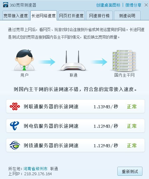 360測(cè)速軟件測(cè)試長(zhǎng)途網(wǎng)絡(luò)速度